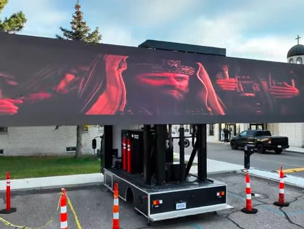 Our "Megatron" billboard expands to the point where it can play full-length HD movies.